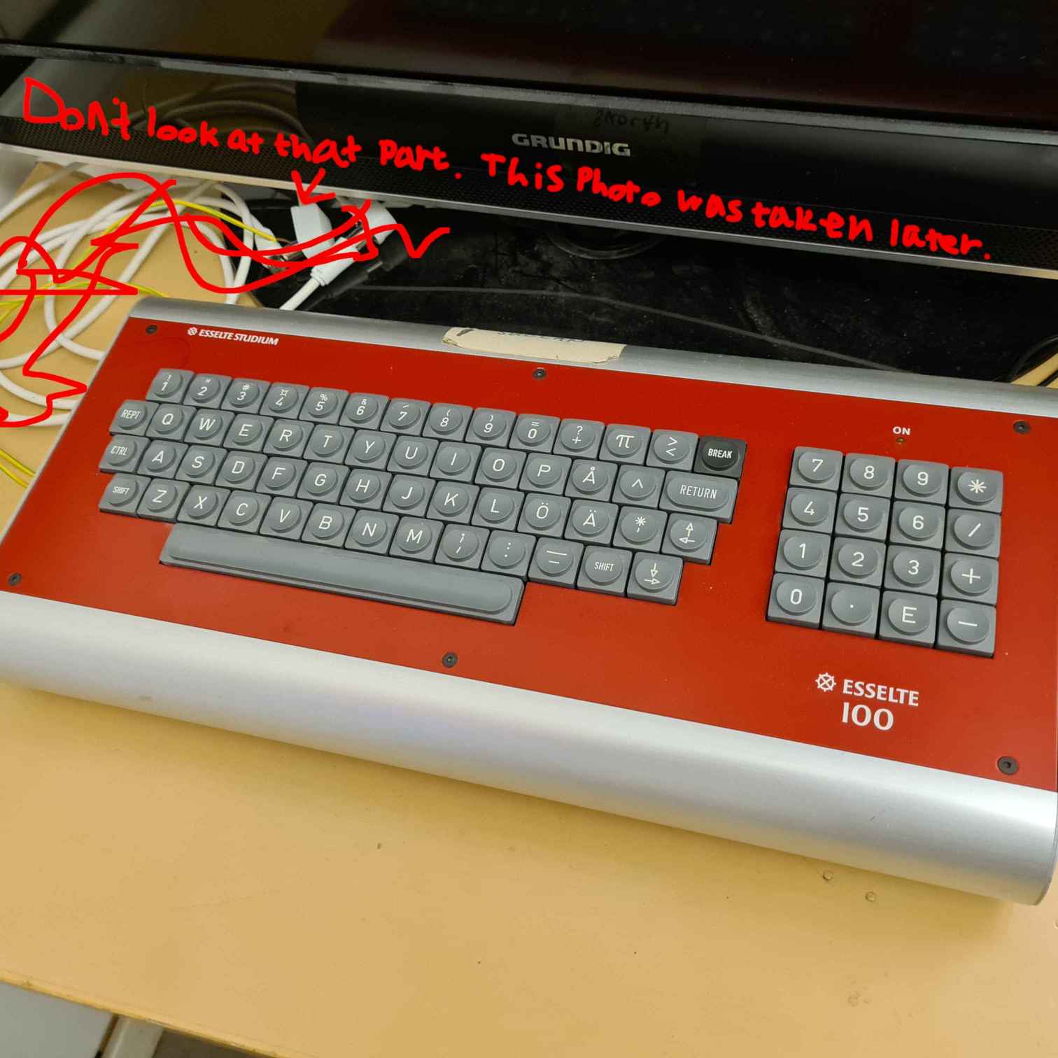 One Thursday evening, I and a few others were talking about a few of the computers that sit in the display case in Stacken’s club room, one of those machines being the Swedish computer Esselte 100 from circa 1980. Cables were missing, but that wasn’t a problem.