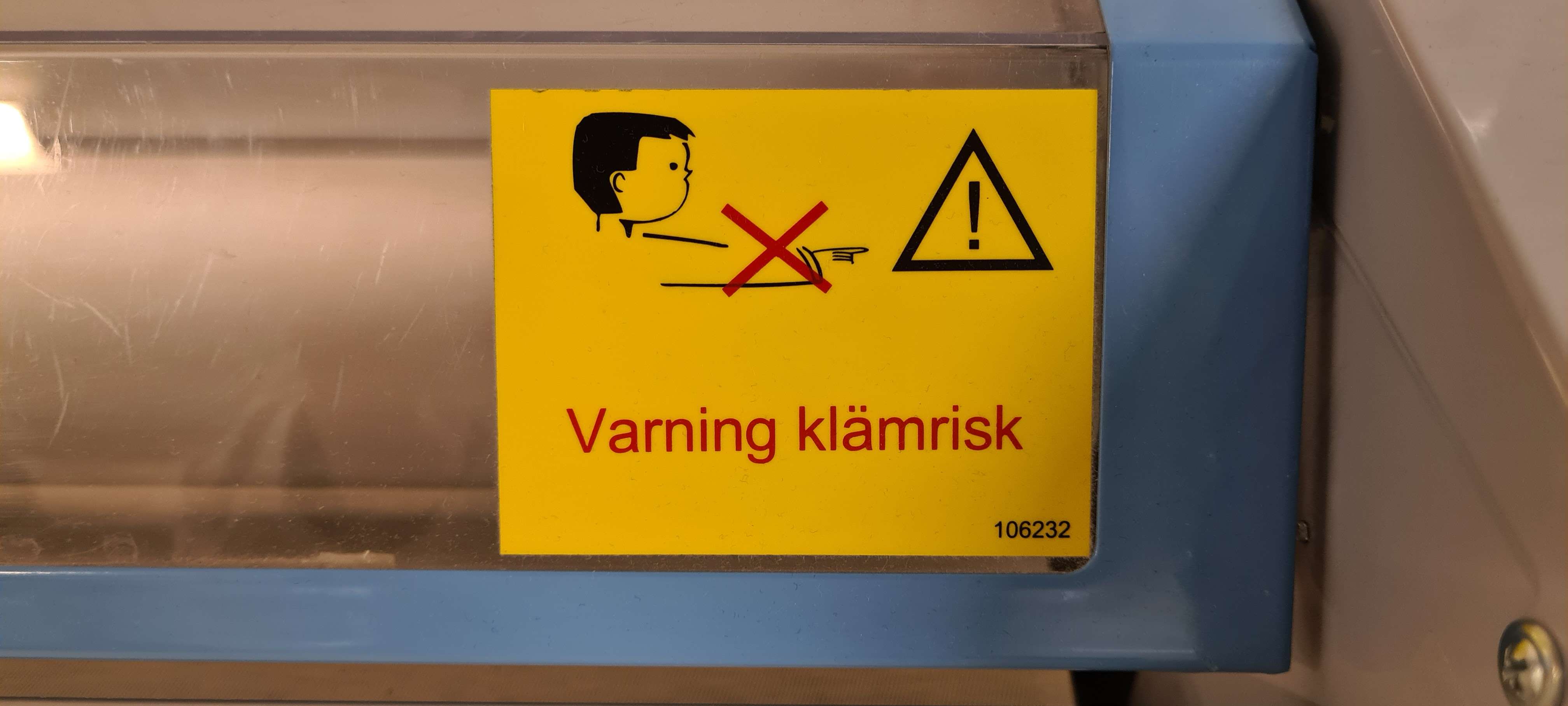 Despite being very clear about the existance of a danger, it’s much too vague about the nature of the danger. If I knew how to operate the machine I might say something like “it says not to touch it but I have to do that to use it”, but I don’t know how to use it so instead I’ll put it in quotation marks and put a little excuse around it, which you’re reading now.